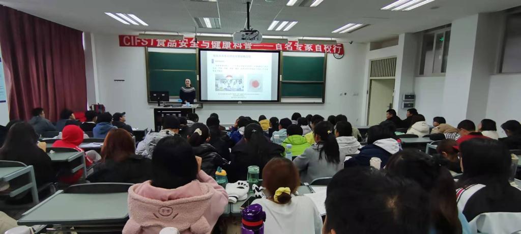在本科生專場,易俊潔通過中國食品科學(xué)技術(shù)學(xué)會“雙百行動”啟動會視頻《食安健康,我們同行》,讓同學(xué)們進(jìn)一步了解科學(xué)普及、科技創(chuàng)新對提高國家軟實力及人民生活水平的重要意義。講座中,易俊潔以科學(xué)普及和科技創(chuàng)新對社會發(fā)展的驅(qū)動作用為切入點,深入淺出的為同學(xué)們講述了我國食品工業(yè)現(xiàn)狀、未來食品面臨的挑戰(zhàn)及科技發(fā)展戰(zhàn)略趨勢,以科普的形式強化了學(xué)生們的安全和健康意識,用科學(xué)方法探求事實真相的思維習(xí)慣,促進(jìn)了學(xué)校食品安全健康教育的提升。